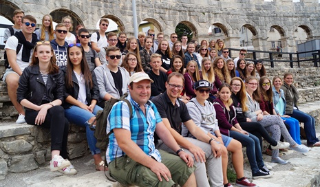9.10.2016 – Zwei zehnte Klassen der Realschule Selb machten sich zusammen mit ihren Lehrkräften auf nach Kroatien, um dort ihre Abschlussfahrt zu verbringen. Ziel war die Stadt Poreč an der Westküste der Halbinsel Istrien. Da die Reise schon um Mitternacht losging, verbrachten