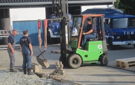 9.10.2016 – Seit Mitte September finden Baumaßnahmen auf dem Betriebsgelände des Technschen Hilfswerk am Schreinersteich statt. Bereits im Vorfeld haben die THW-Helfer diverse Vorarbeiten ehrenamtlich geleistet. So wurden z.B. an einem Samstag die Pflastersteine herausgenommen,