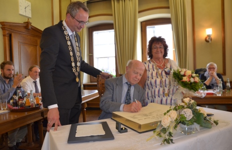 29.6.2016 – Eine besondere Ehre wurde dem Selber Porzellankünstler Helmut Drexler zuteil. In der Stadtratssitzung am Mittwochabend bekam er für seine hohen Verdienste um das Wohl der Stadt Selb den „Goldenen Ehrenring“ der Stadt Selb überreicht. Zudem durfte er sich ins