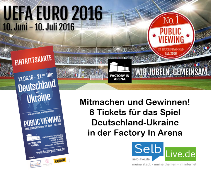 7.6.2016 – Am 10. Juni beginnt die Fußball-Europameisterschaft. Zwei Tage später, also am Sonntag, 12. Juni um 21 Uhr, startet die Deutsche Nationalmannschaft mit dem Spiel gegen die Ukraine ins Turnier. Auch diesmal wird in Selb „Public Viewing“ als eines der größten
