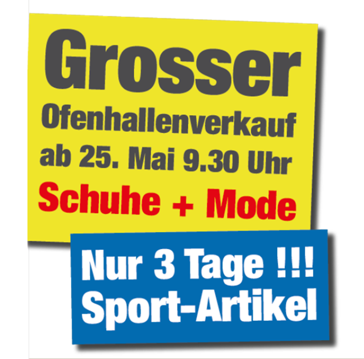-ANZEIGE- Mit großem Erfolg startete vergangene Woche der große Sonderverkauf mit Schuhen in der Ofenhalle. Viele kamen vorbei und waren begeistert von der riesigen Auswahl an Mode und vor allem der über 5.000 Paar angebotenen Damen– und Herrenschuhe. Die Resonanz